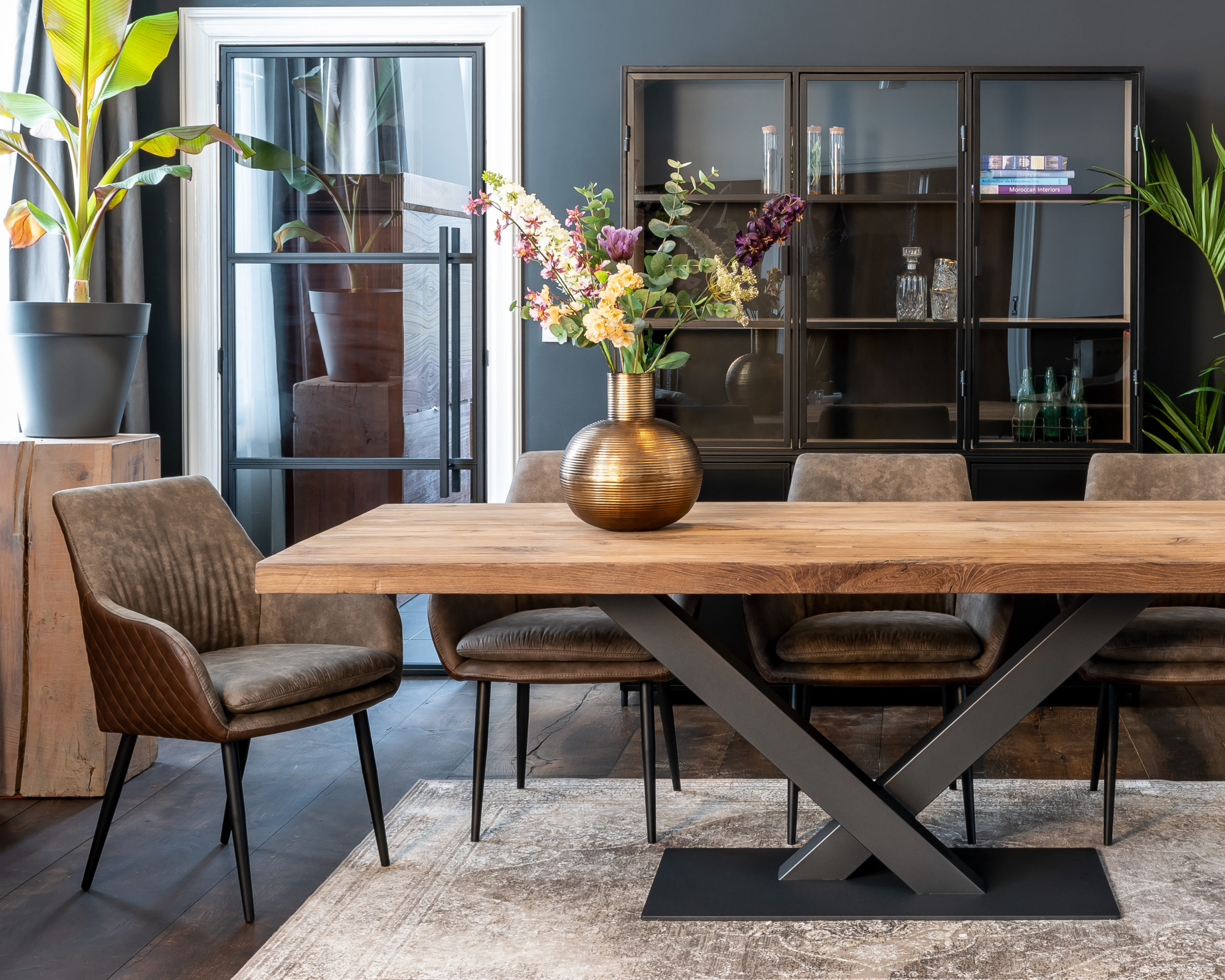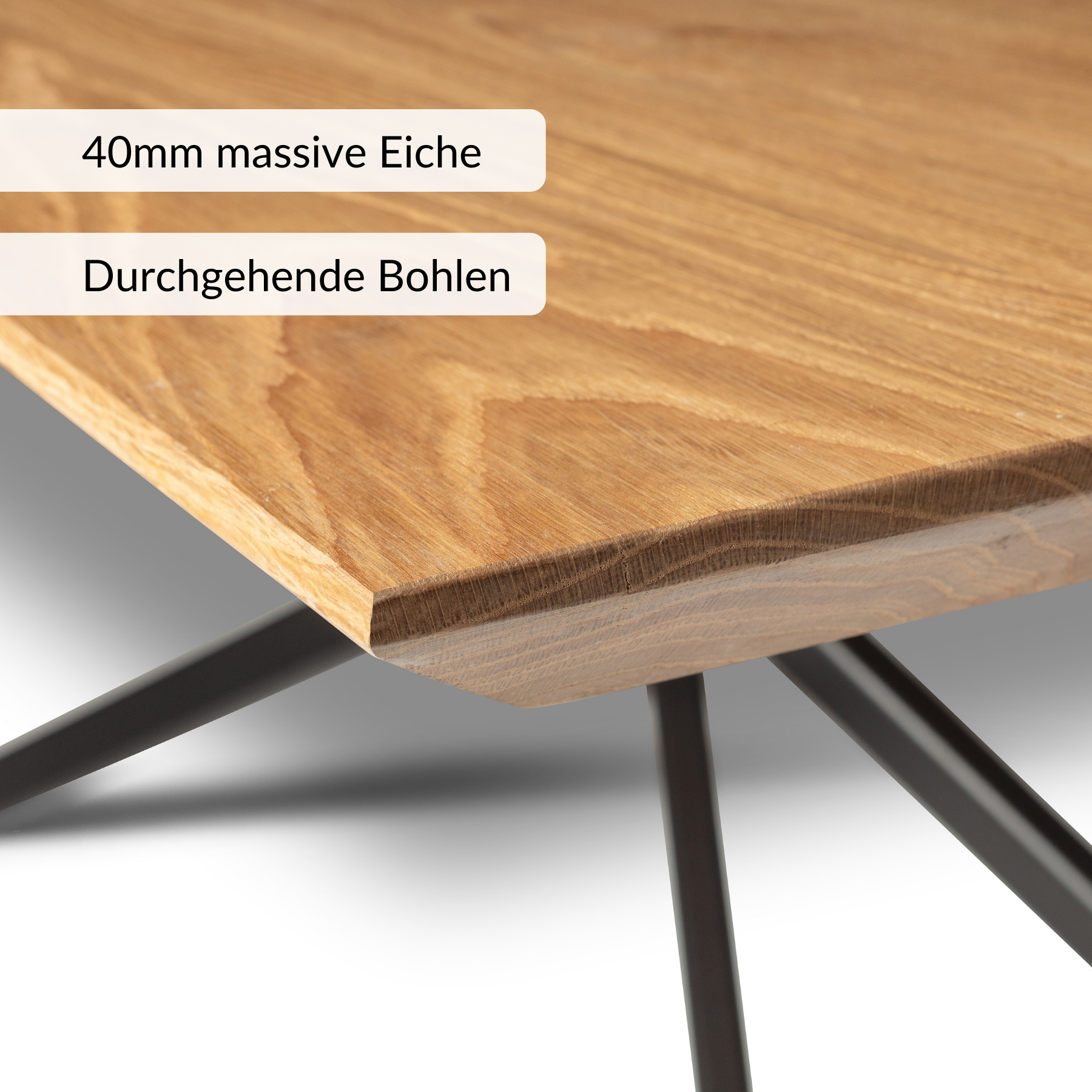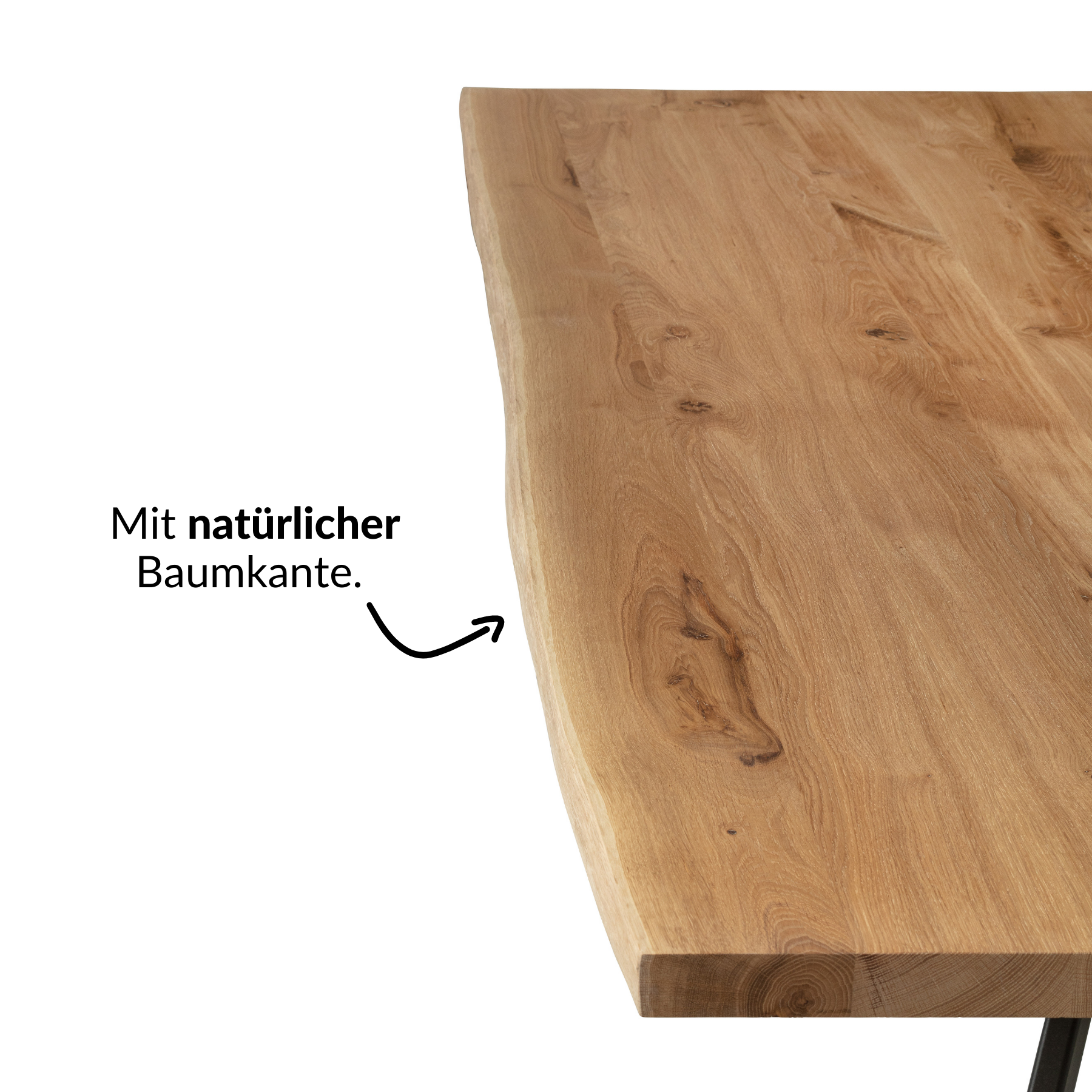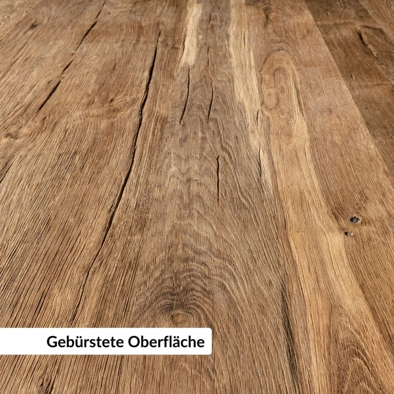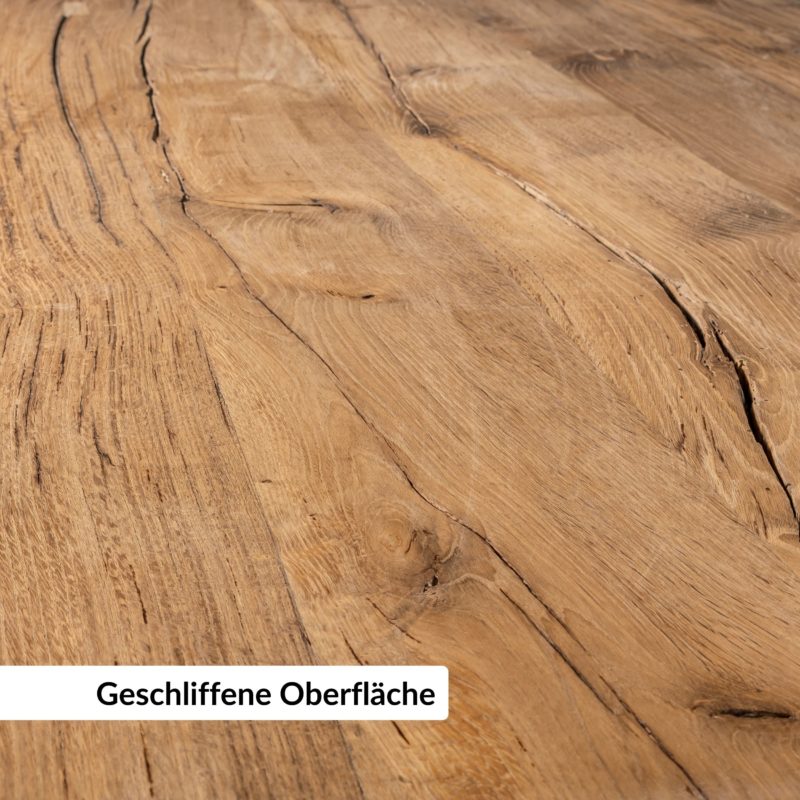 Dir stehen die selben Gestelle zur Auswahl, wie auch im Konfigurator. Der massive Stahl im Industrial Stil passt perfekt zur Alteiche und macht den einzigartigen Look komplett.