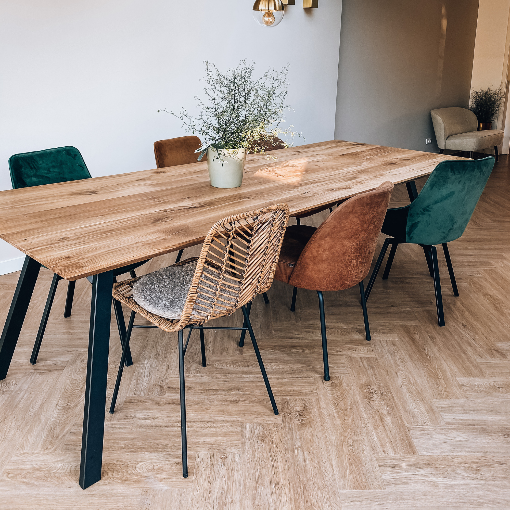Wähle das passende Tischgestell aus massivem Stahl dazu.