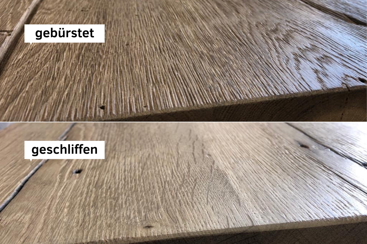 Die Alteiche-Platten haben entweder eine gebürstet oder eine geschliffene Oberfläche. Aber was genau bedeutet das?