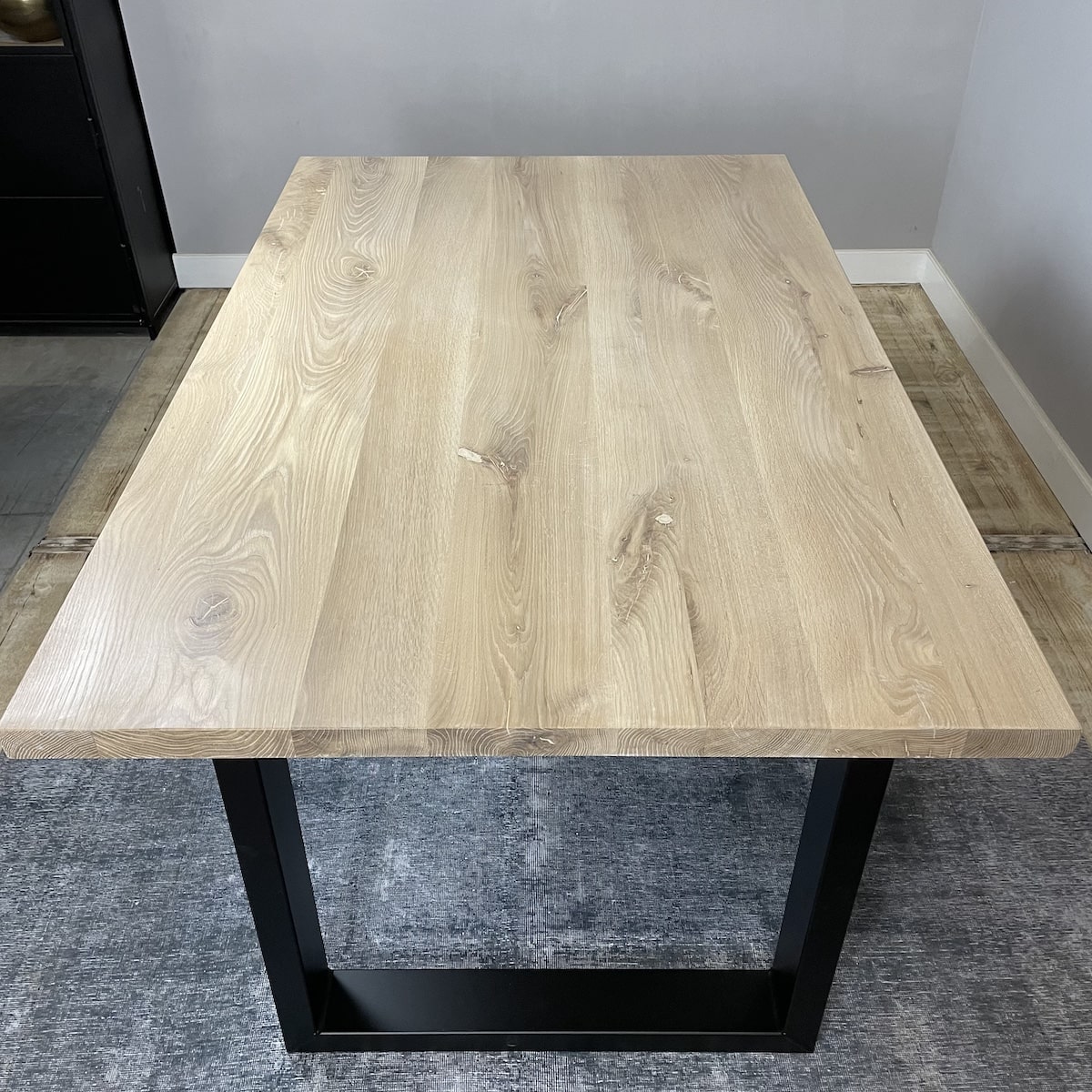 R67 Outlet Esstisch Schweizer Kante 200×100 Natural White mit Metallgestell U