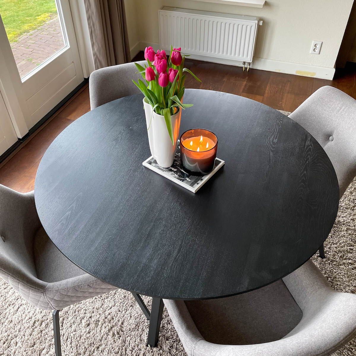 Dieser Tisch ist eine Beispiel-Konfiguration. Die Tischplatte besteht aus 40mm massivem Eichenholz mit Schweizer Kante. Der Durchmesser liegt bei 120cm und eignet sich dadurch perfekt für 4-6 Personen. Das Gestell besteht aus hochwertigem Stahl und wurde pulverbeschichtet. Wenn dies dein Traumtisch ist, dann kannst du ihn zum Warenkorb hinzufügen und sofort kaufen. Wenn du etwas anpassen möchtest, dann kannst du im Konfigurator nach Belieben sowohl die Kante, als auch Größe, Farbe und Gestell ändern.