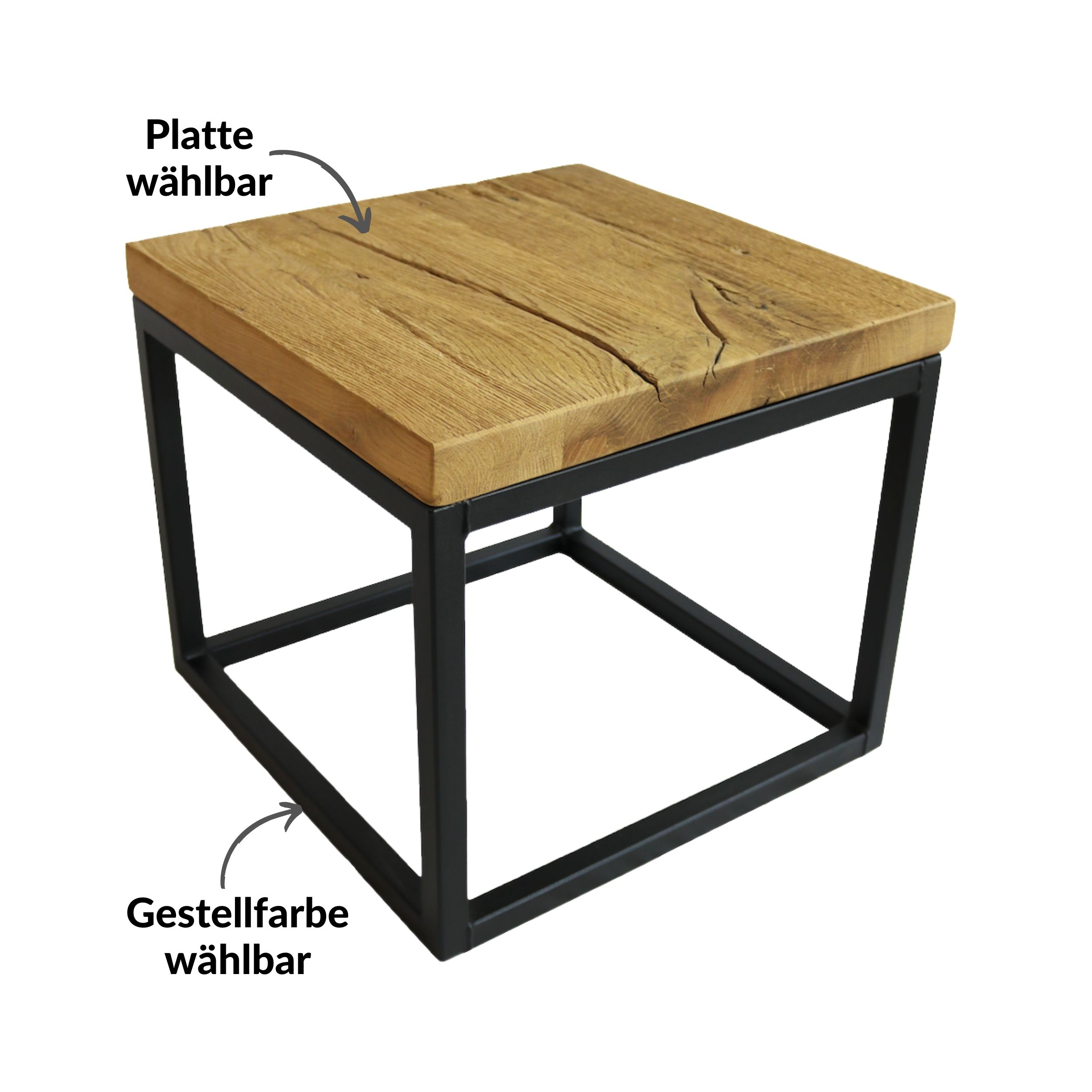 Klein, aber fein ist auch unser Beistelltisch Oslo aus Metall und Holz. Auch diesen kannst du auf Wunsch selbst mitgestalten. Denn wie beim großen Massivholztisch kannst du hier Gestell und Platte ebenfalls frei wählen und deinem Beistelltisch so deinen individuellen Look verpassen. So ein innovativer Beistelltisch für die Couch ist ein toller Eyecatcher in jedem Wohnzimmer. Beistelltische aus Alteiche wirken eher klassisch rustikal. Ein Beistelltisch im Industrial-Look dagegen gibt deinem Wohn- oder Schlafzimmer eher einen kühlen, modernen Touch. Allen Beistelltischen gemeinsam ist natürlich das schöne Holzmuster der Platte, das sofort ins Auge fällt. Besonders attraktiv wirkt dein Beistelltisch, wenn er optisch gut zu deinem Couch- oder Esstisch passt.