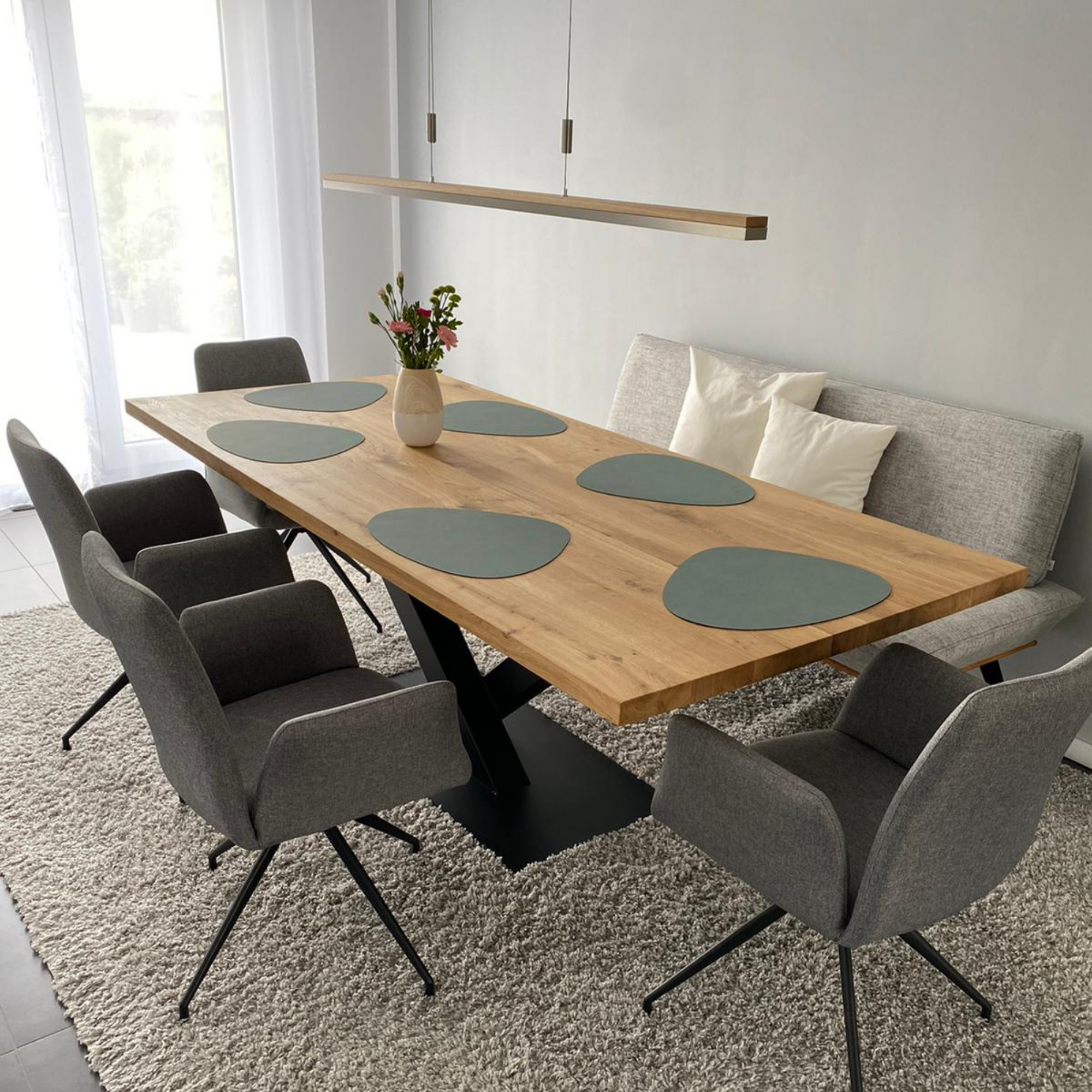Ein Esstisch aus Massivholz besticht mit seiner natürlichen Maserung und bietet außerdem Platz für ein gemütliches Beieinandersitzen. So hast du neben dem kulinarischen auch einen optischen Genuss, denn bekanntlich isst das Auge mit. Ein rustikaler Esstisch mit hellem oder schwarzen Stahlgestell passt sich wunderbar jedem Ambiente an. Ob ein Esstisch aus Massiveiche oder gar ein uriger Alteichetisch: Unikate sind sie alle.
