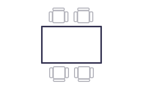 Der Klassiker unter den Esstischen ist die rechteckige Variante mit vier Beinen an den Ecken, bei dem an den Kopfenden jeweils ein Stuhl platziert wird.